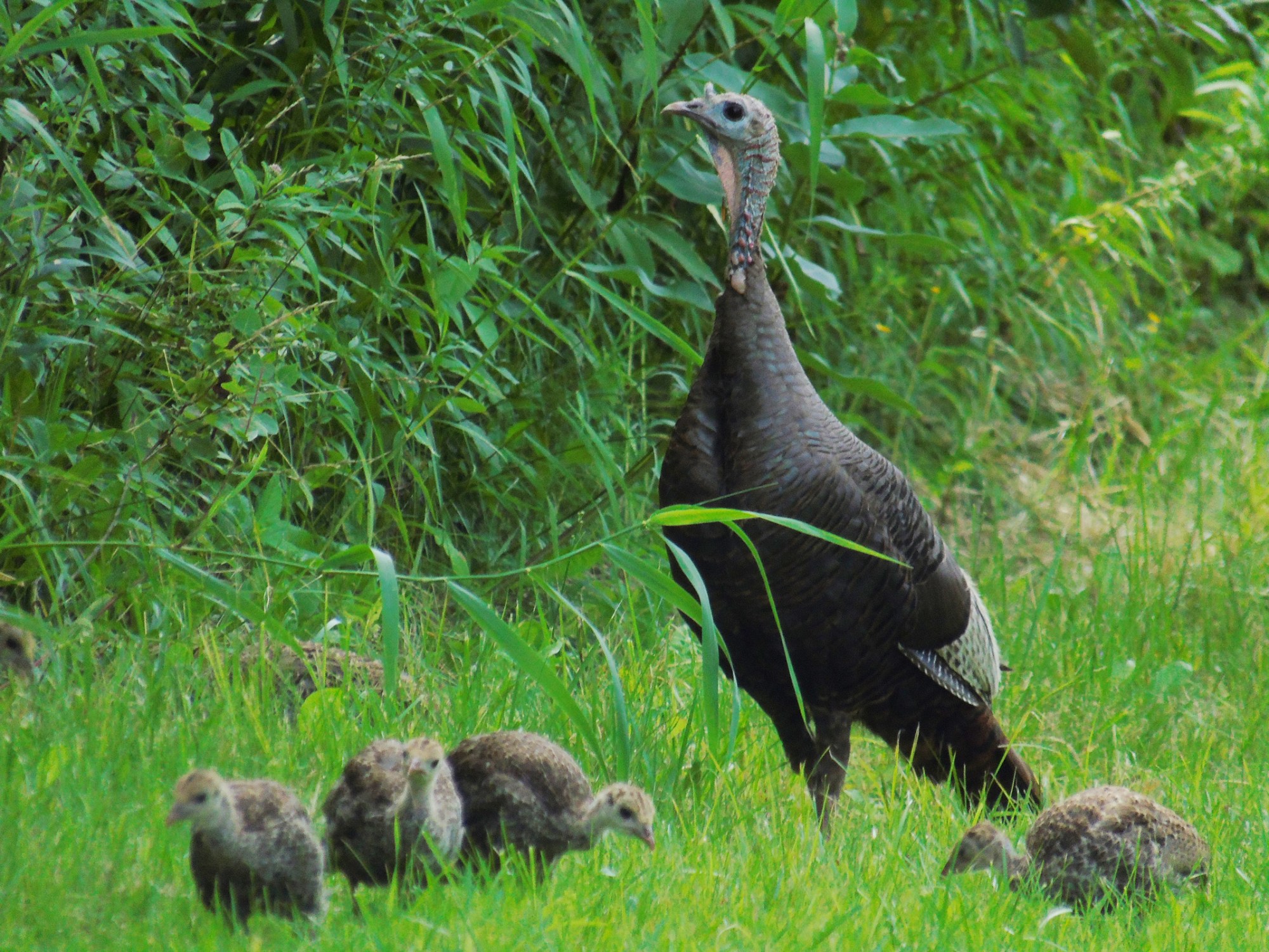 Wild Turkey are a common bird throughout Southern, and Eastern Ontario. I have observed them since around 2003. The Ministry of Natural Resources re-introduced them into the province in the late 1990s when we made a trade with Michigan. We gave them Moose, and we got some Wild Turkeys in return. Its amazes me how fast they spread. These birds are very tall at over 3 feet tall, but they are not as plump as domesticated turkey, and can actually fly. The ones I photographed are all on park land, and are not in danger of being hunted.