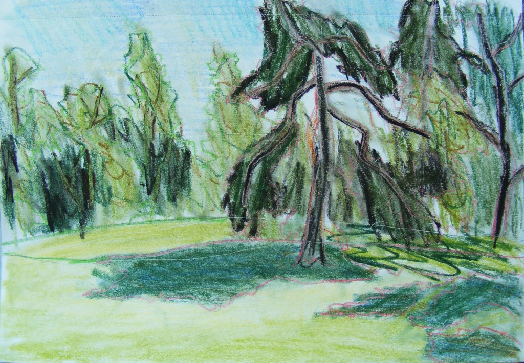 Here are some quick sketches from June, July and August 2021. Many of these were done from photographs, but several were also done in plien aire, outside in the natural light. These include the 2 sketches from St Raphels Ruins, Hosta Watercolour, and the Front of Cabins Pines.