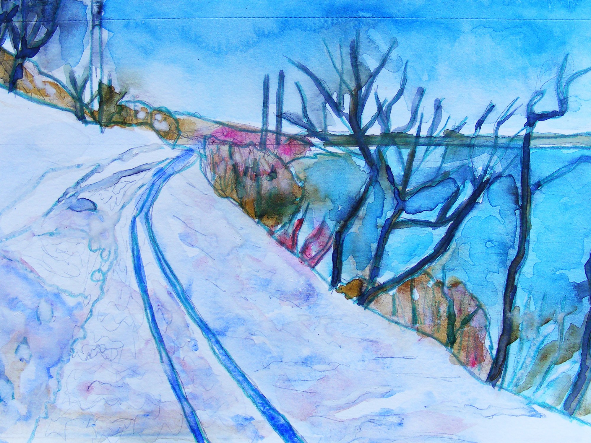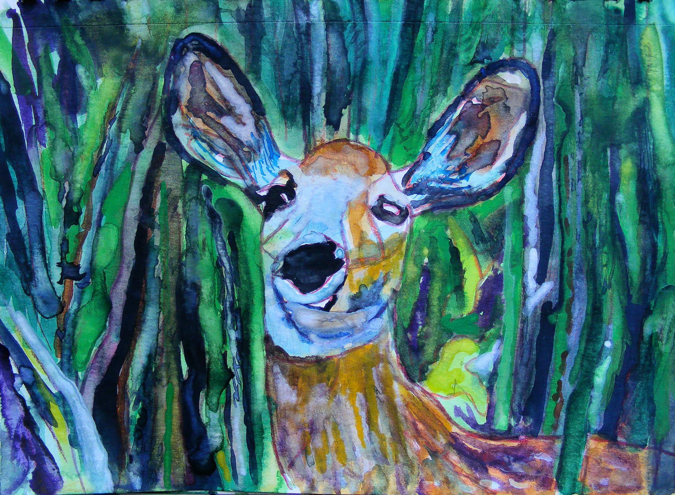 I like your watercolours particularly the doe and the Domtar trail – that one has a stained glass feel to it. Nice effect.