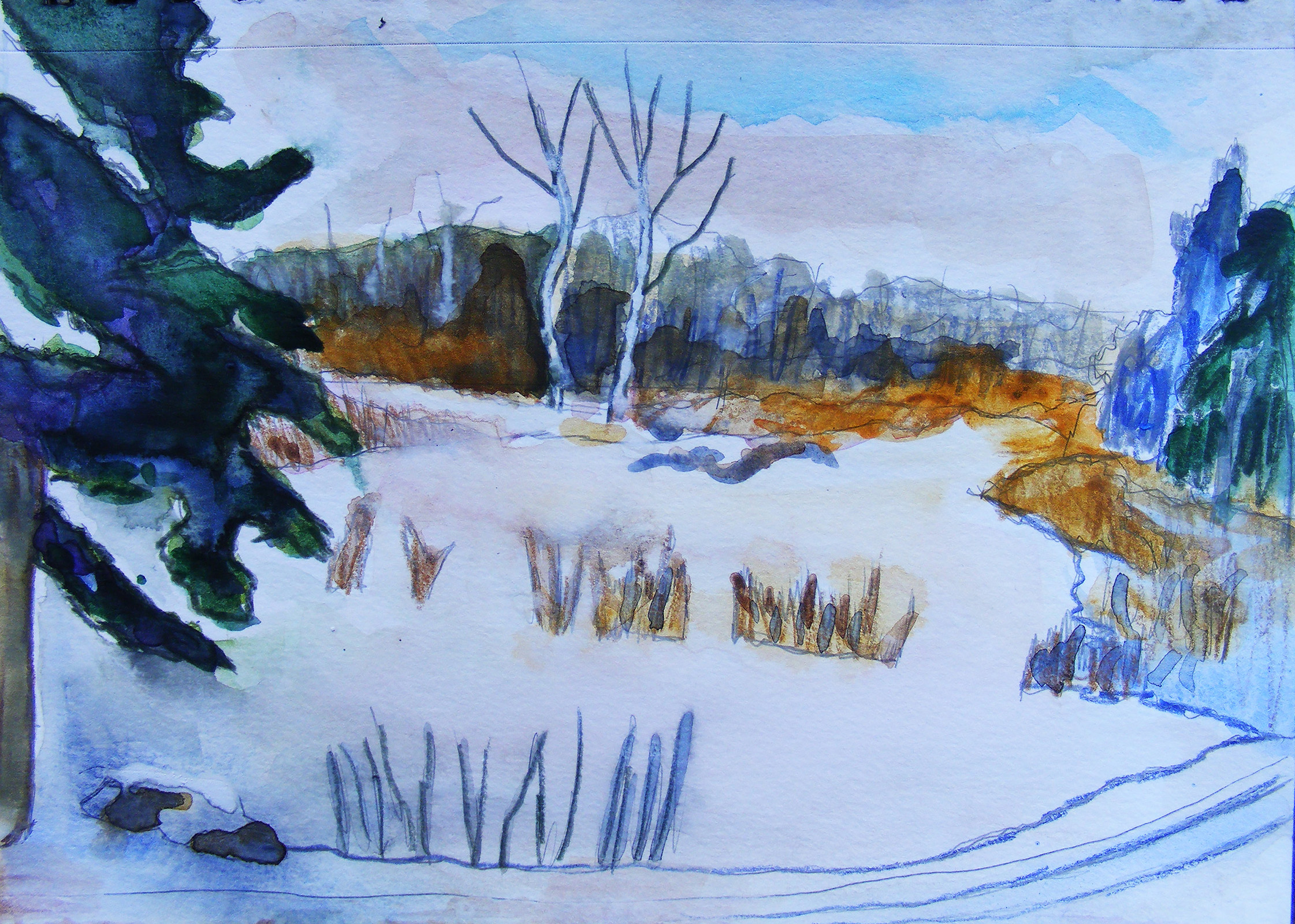 Here are some quick sketches I created between August 2021 and January 2022. Most of these were done outdoors before the weather turned bad, however, the Watercolour paintings at the top of the post were done in my studio. Recently, I have been doing more larger drawings, and my quick sketches have taken less priority. Therefore I did less of them then I normally would have in 6 months. All of these drawings were done as either watercolour paintings, or Faber Castel Pitt Pastel drawings.