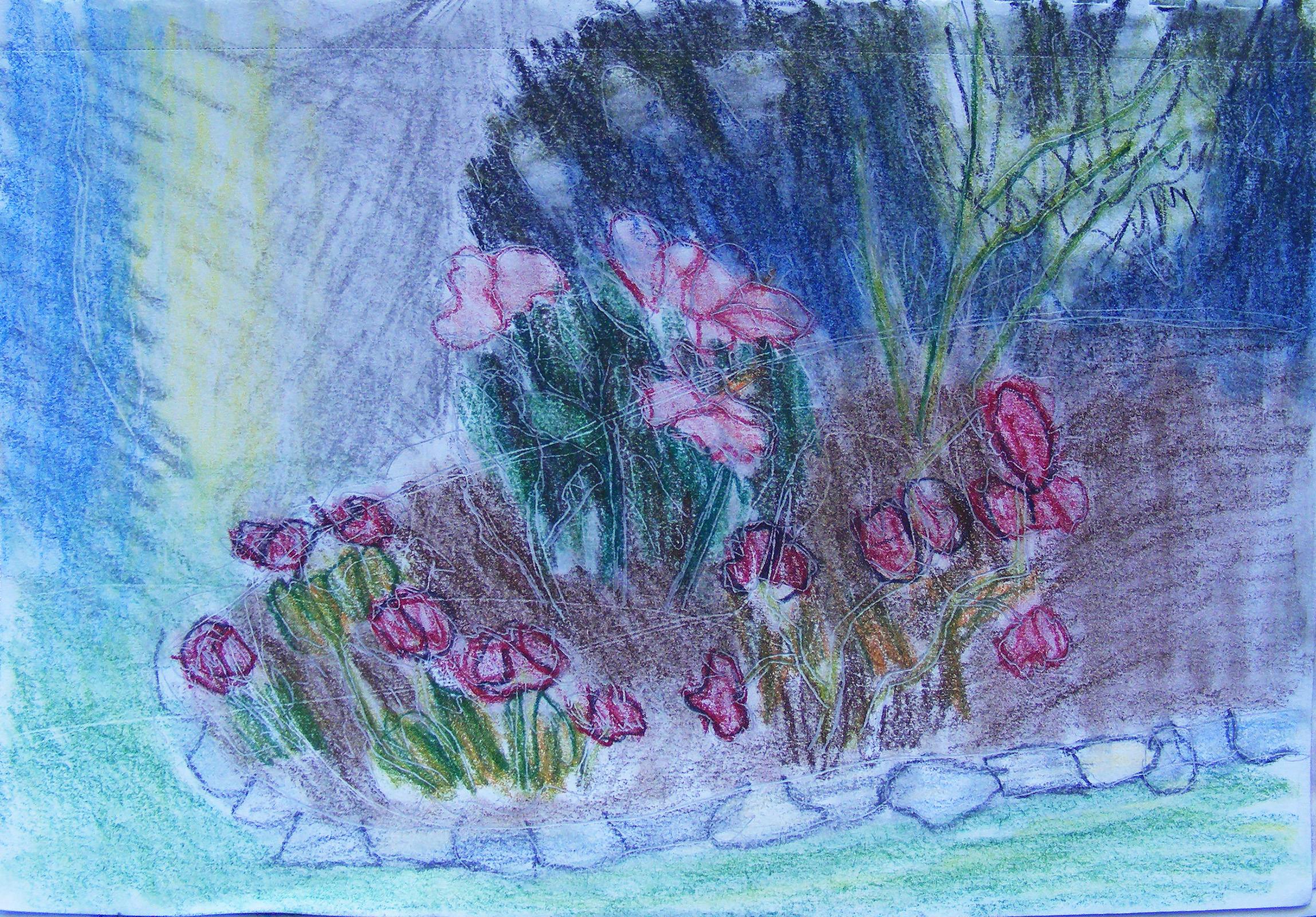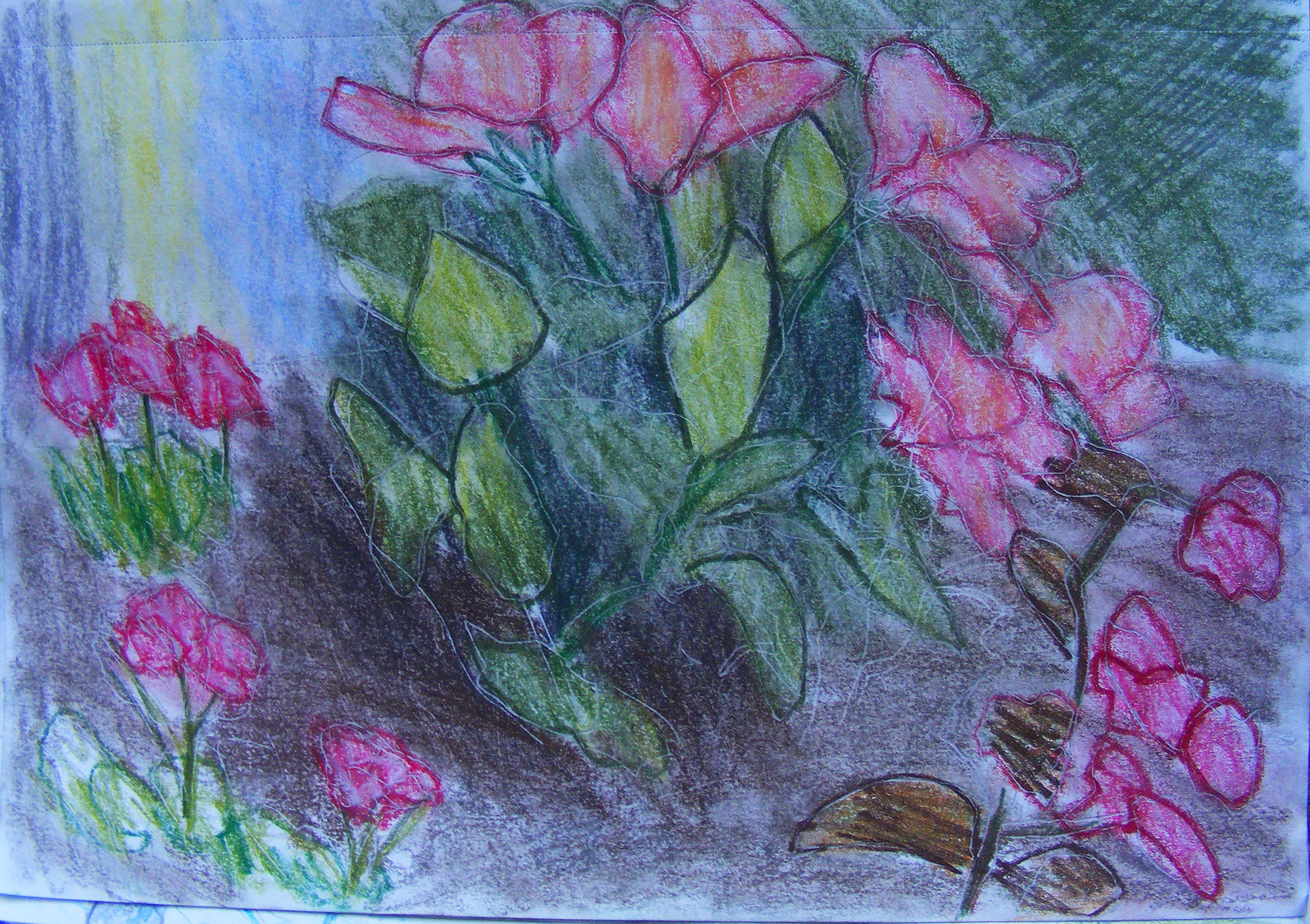 I really like the snow scenes, deer and garden plants. Your pastel strokes are bold and colorful. Keep up the great work.