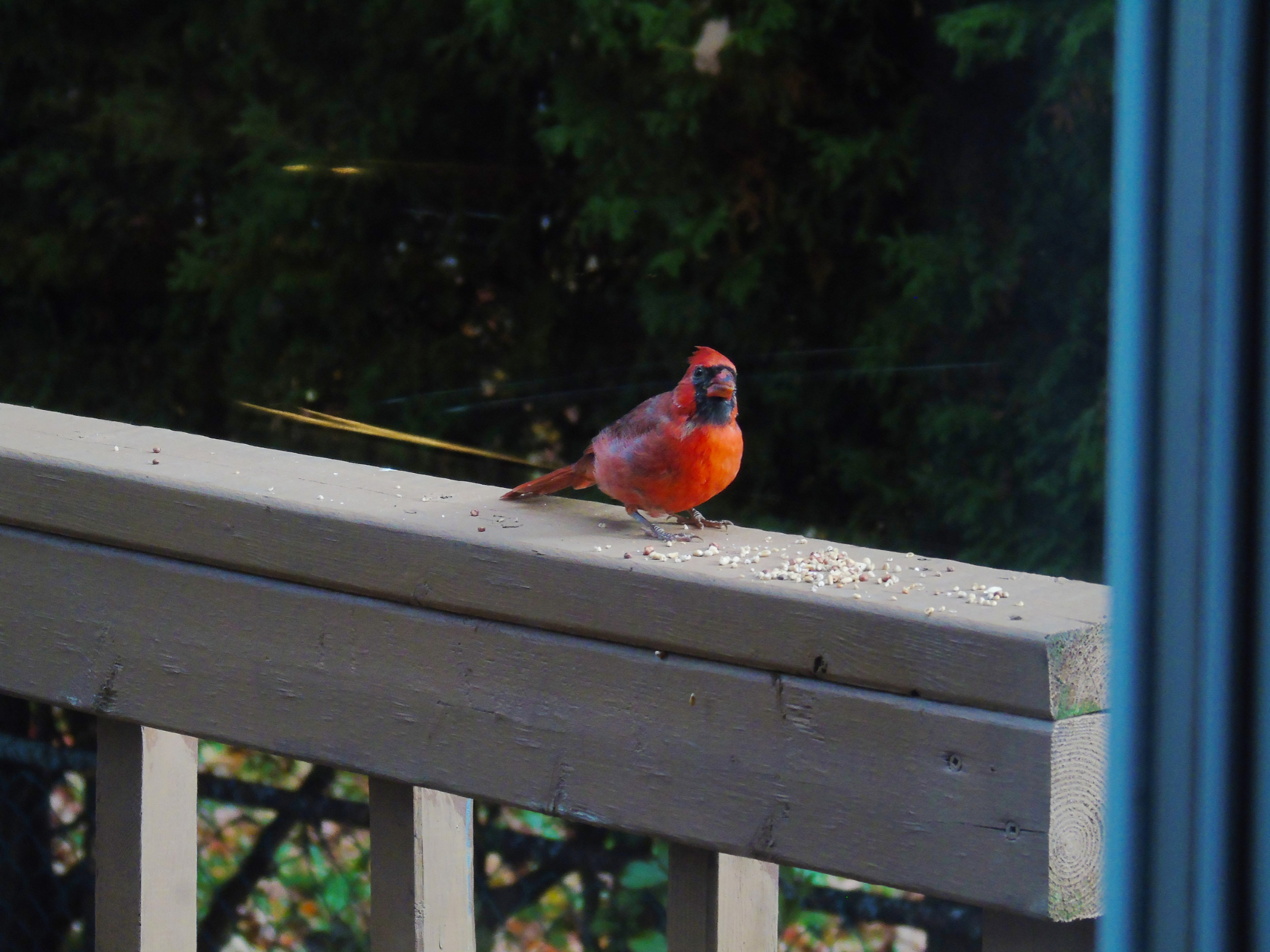 I got many pictures of the changing leaves, as well as pictures of a Cardinal, Blue Jay, and Grey Squirrel (Black) in our backyard, as well as a Garter Snake out on the trail. I hope you enjoy my photos!!