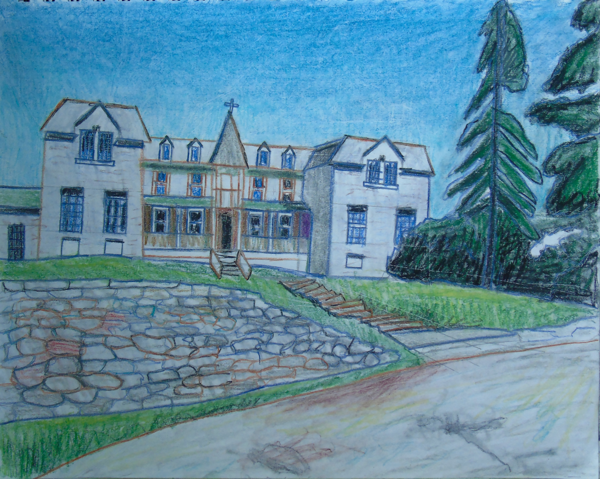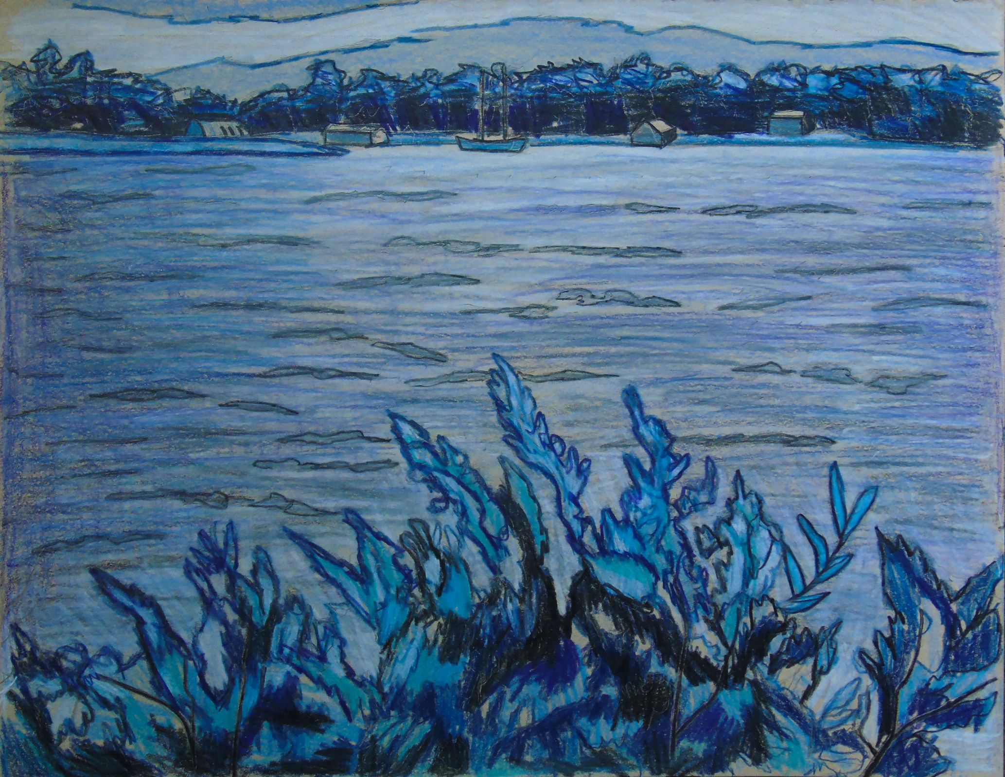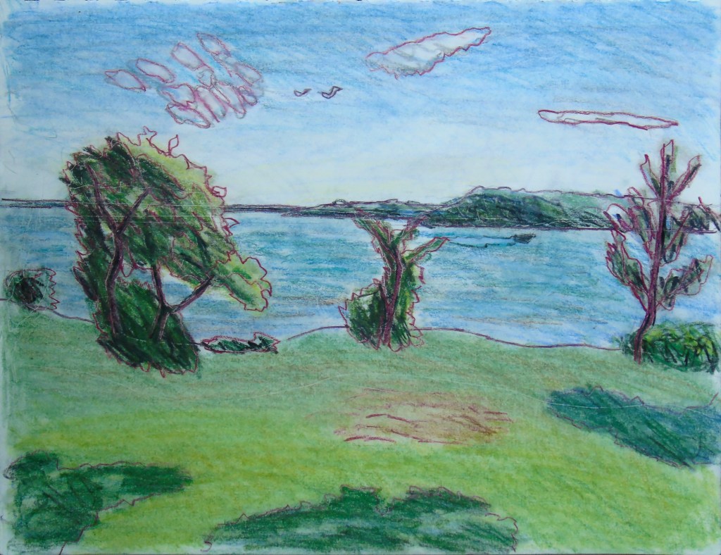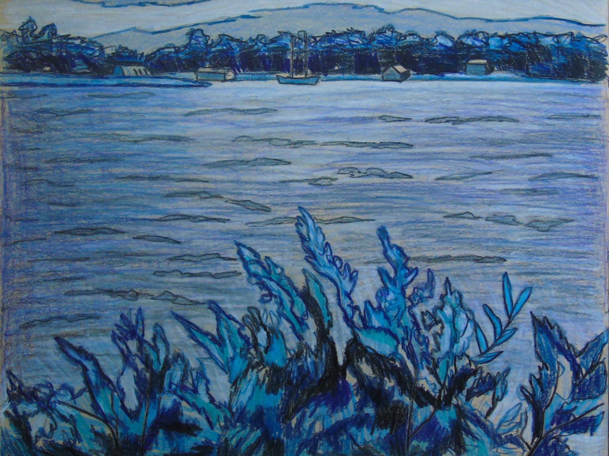 One interesting thing involving art recently is that I started going back to a studio once every week. One of those places where you pay a small fee, bring your own supplies and talk to other artists. After 2 years of Covid Restrictions, I really needed this new outing. I also visited a Cabin in July and created a Plein Aire Sketch of the pine tree “Woodlands Pine.” I also included 2 takes on the same scene. “Long Sault Marina” as a normal colour version, and a monochromatic blue version.