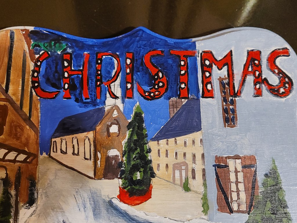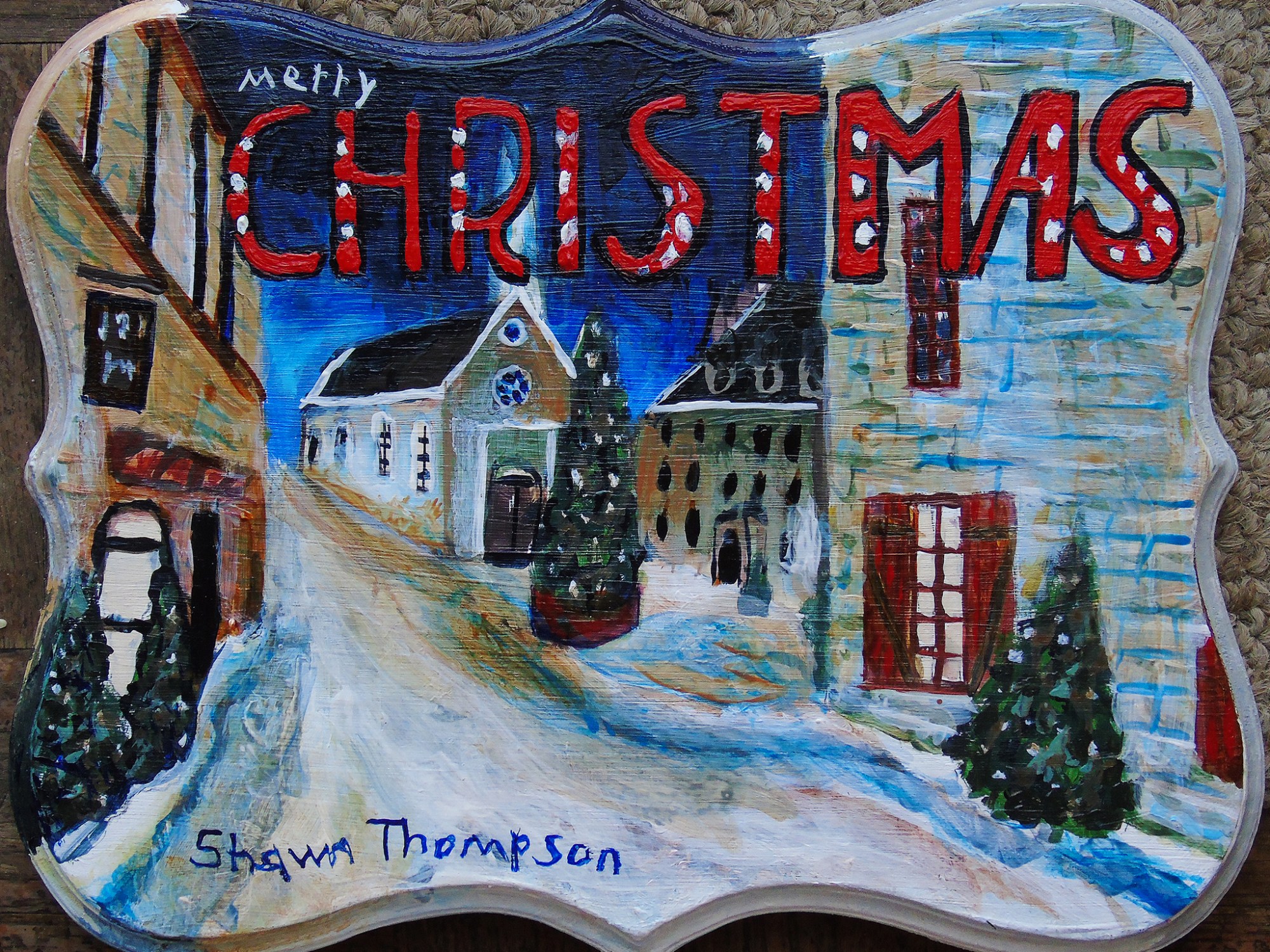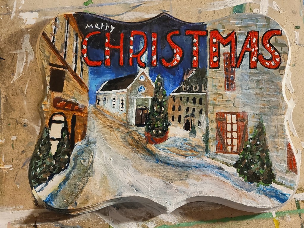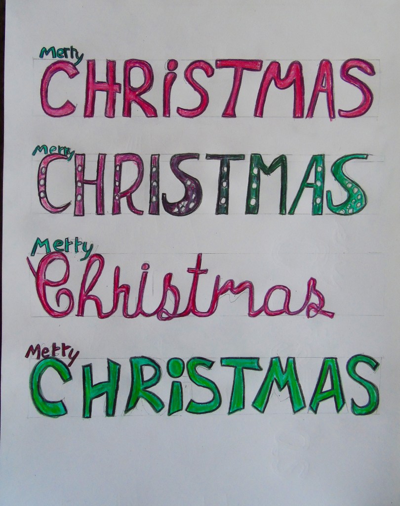 Here is a painting on a Wood Panel that I created last November and December. I started with a page of type experiments and looked for creative Christmassy Text, on DaFont.com.