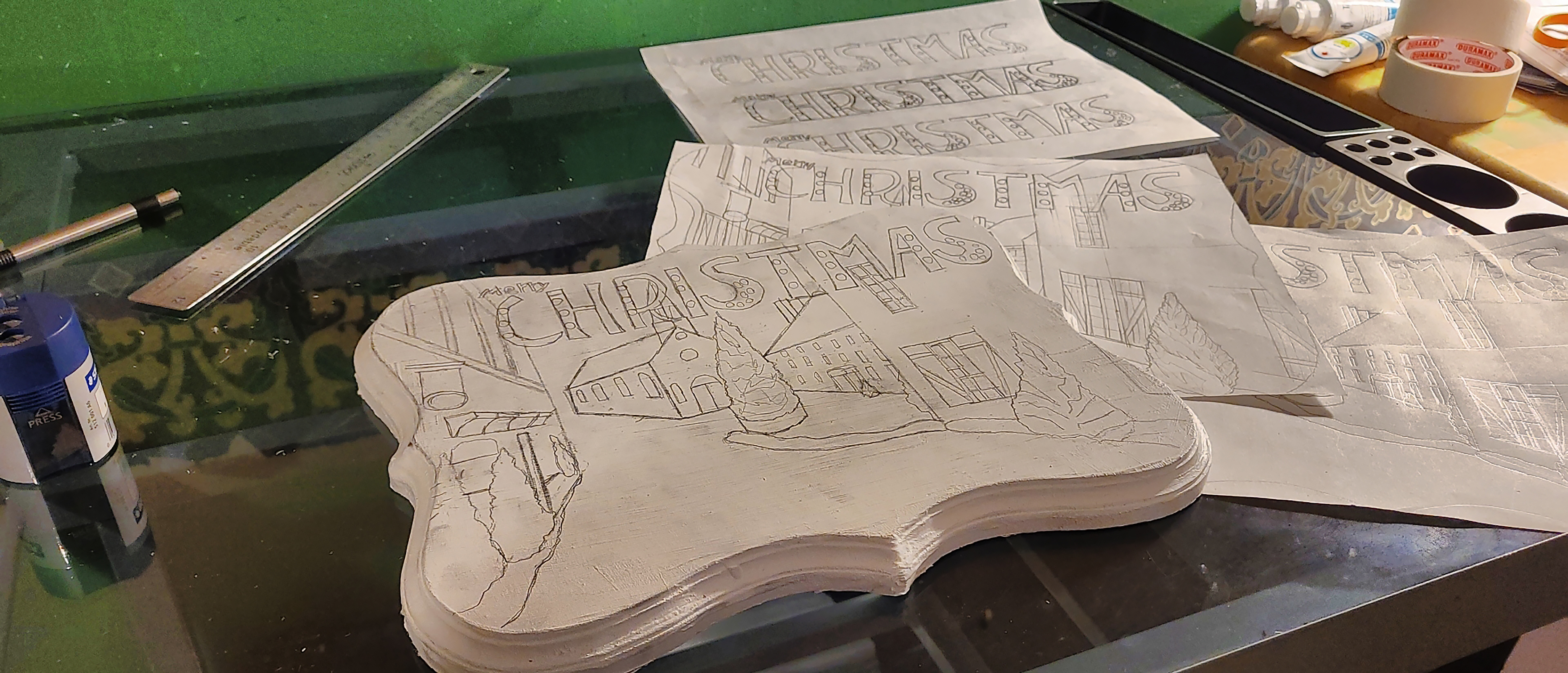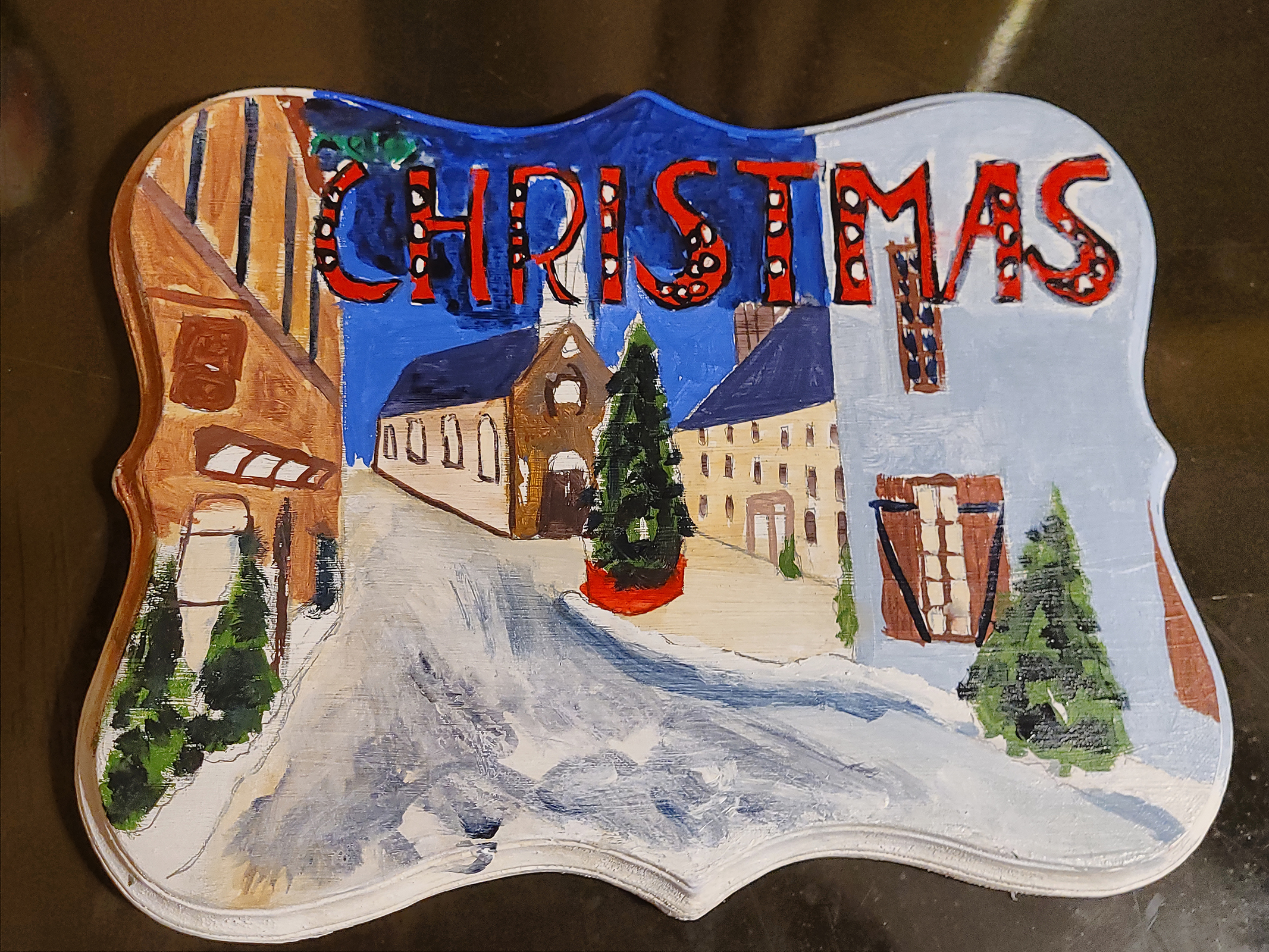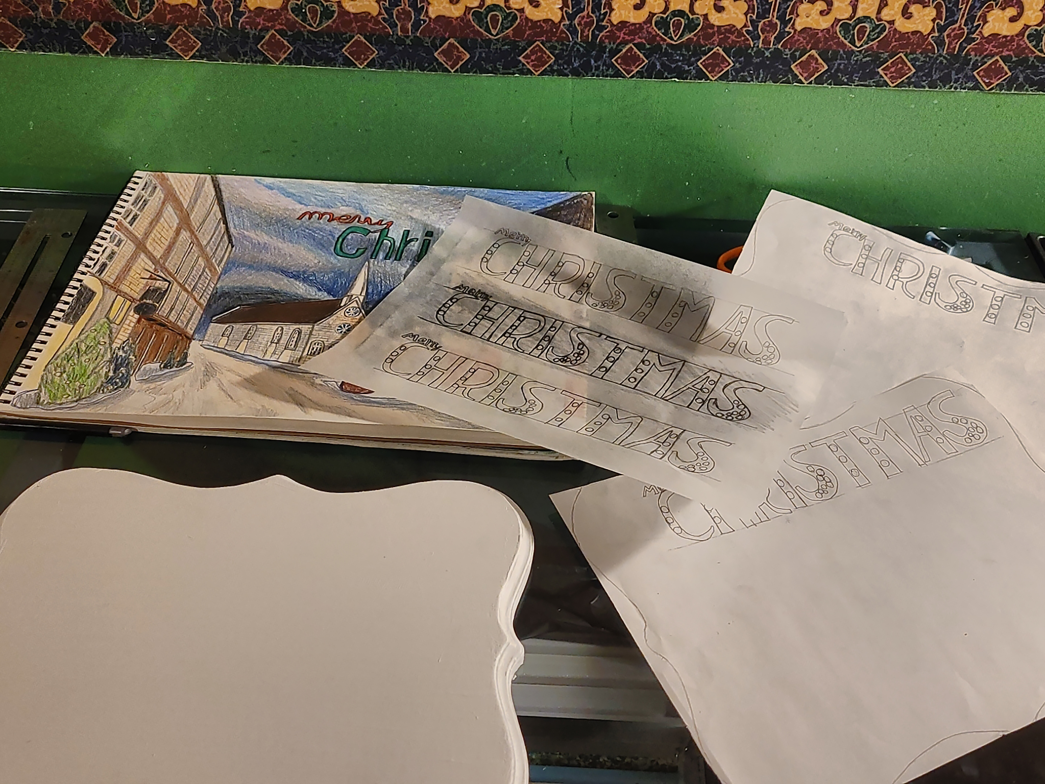 Here is a painting on a Wood Panel that I created last November and December. I started with a page of type experiments and looked for creative Christmassy Text, on DaFont.com.